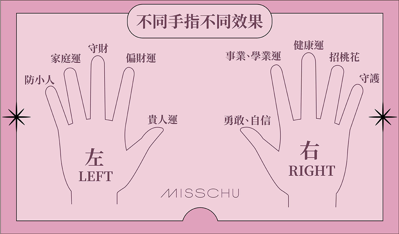 但在國際上男生戒指戴法和女生戒指戴法的意義是通用的,沒有性別之間的差異。 無論是想表達的感情狀態、個性分析,或是跟運勢相關聯的祈求